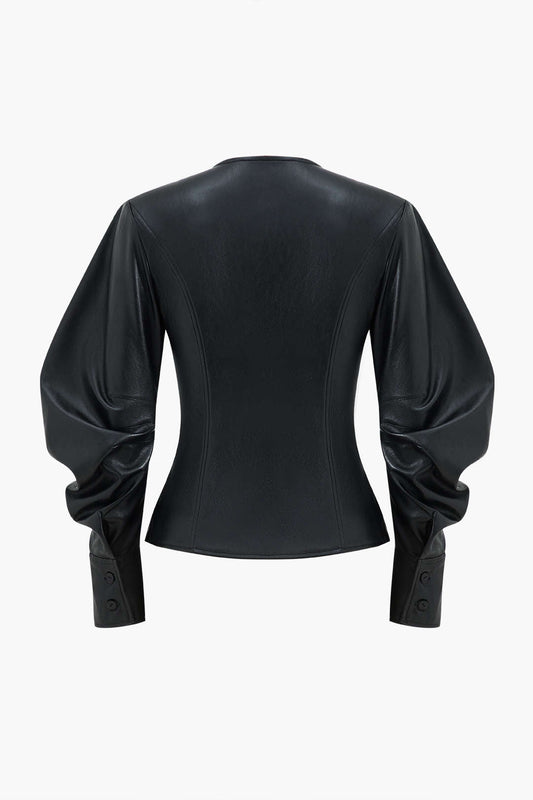 Faux Leather Metallic Buttoned Jacket