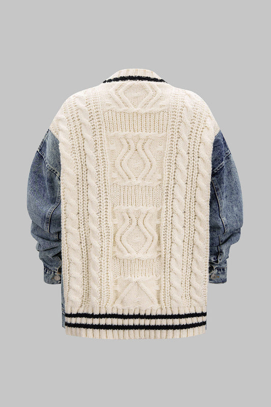 Patchwork Knit Denim Outerwear Jacket
