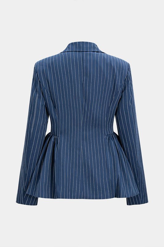 SAVE 30%Ruched Shoulder Pad Striped Blazer