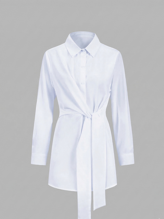 Mock Neck Ruching Detail Long Sleeve Shirt