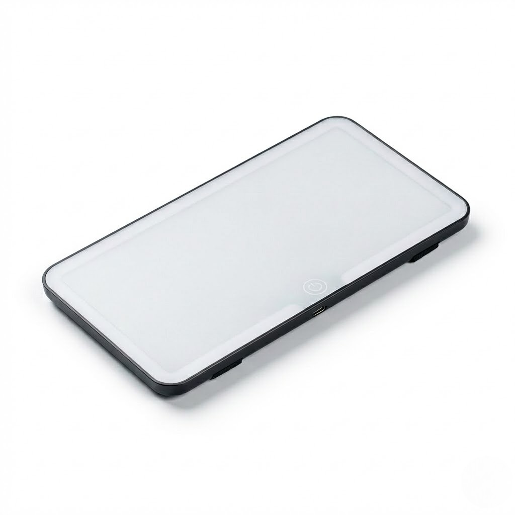 With daily 15-minute use, the GlowView lasts approximately 3-4 weeks before needing a recharge. At maximum brightness with continuous use, you'll get 8+ hours of illumination. The included 10-foot USB-C cable makes charging in your car or at home incredibly convenient.