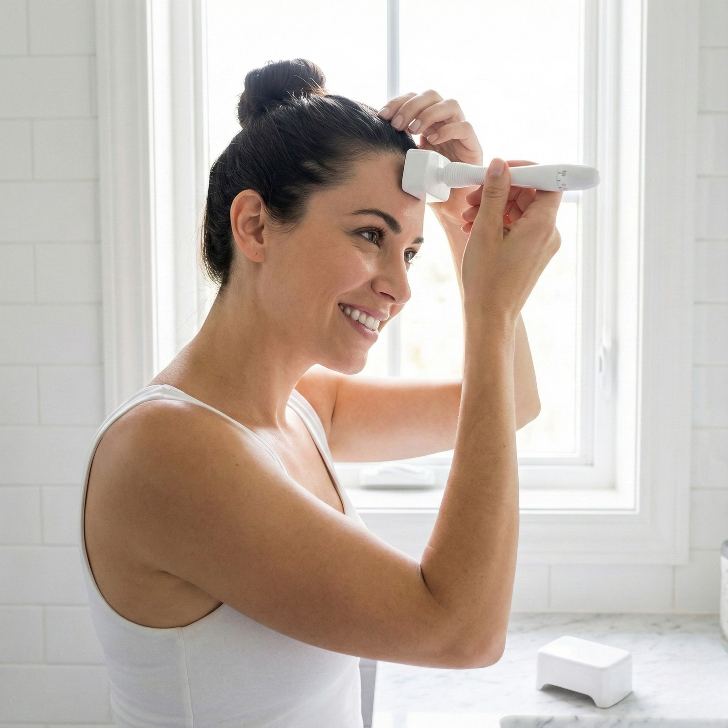 Absolutely! The Renew Stamp is specifically designed with adjustable depths up to 3mm for scalp microneedling, which stimulates blood flow and activates hair follicles. Use 1.5-2.5mm depths on the scalp 2-3 times per week, followed immediately by hair growth serums or treatments. Most users notice improved hair density within 8-12 weeks of consistent use.